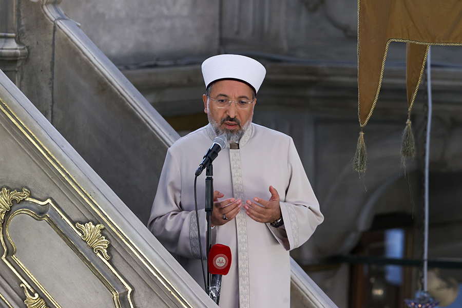Diyanet İşleri Başkanı Prof. Dr. Safi Arpaguş, İstanbul Eyüp Sultan Camii’nde hutbe irad etti ve ardından Cuma namazını kıldırdı.
