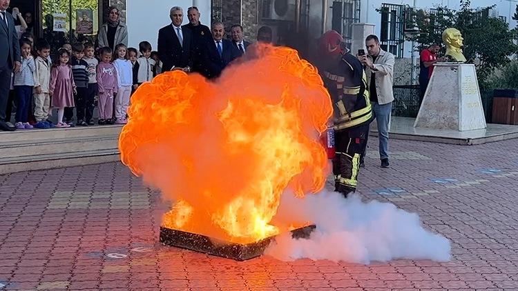 Deprem sonrası oluşabilecek yangına ilişkin de tatbikat yapıldı. İtfaiye personeli, yangın anında neler yapılacağına ve yangın tüpünün nasıl kullanılacağına ilişkin öğrencileri bilgilendirdi.