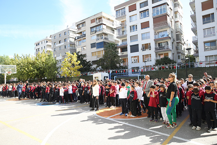 İkinci sirenin çalmasının ardından öğrenciler, yangın ve okul merdivenlerinden binaları tahliye ederek okul bahçesindeki güvenli bölgelerde sınıflarına göre daireler oluşturdu.