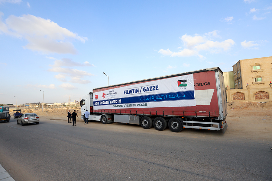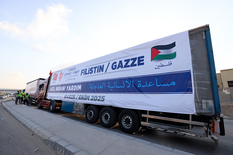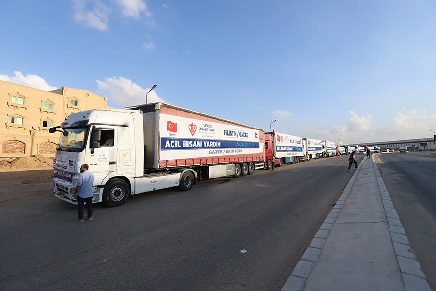 Türkiye Diyanet Vakfı (TDV), Mısır üzerinden insani yardım yüklü 20 tırı Gazze Şeridi'ne gönderdi.